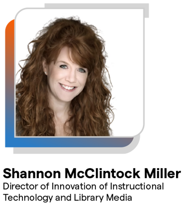 | Shannon McClintock Miller | Director of Innovation of Instructional Technology and Library Media – Van Meter Community School, IowaFuture Ready Librarians SpokespersonLibrary Journal Mover and Shaker 2016ISTE Making IT Happen 2018AASL Leadership Luminary Social Media Superstar |